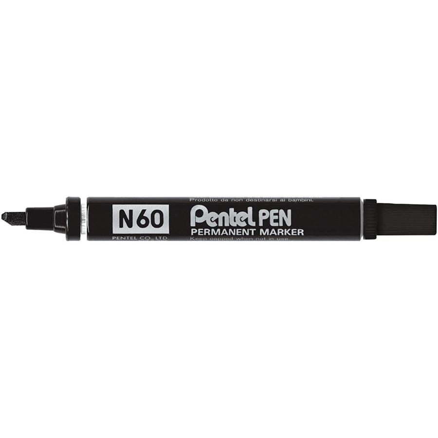 Pentel Marqueur permanent N60, noir, pointe biseautée