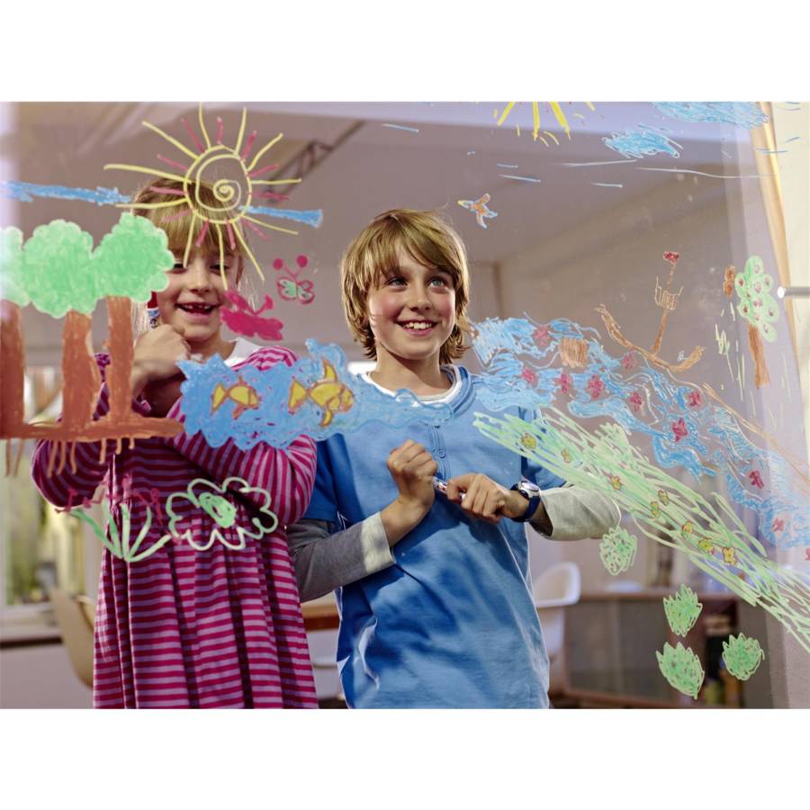 Faire apparaître le soleil sur une fenêtre hivernale, ajouter quelques flocons de neige ou faire cracher du feu à un dragon depuis le coin d'une fenêtre - aucun problème avec le edding 16 FUNTASTICS Window Fun, très opaque et lumineux, qui est disponible dans des couleurs brillantes pour le verre, les fenêtres et les miroirs