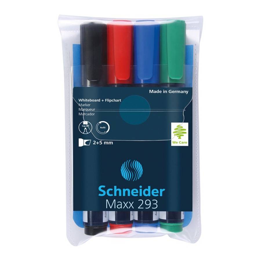 Voir plusMarqueur pour tableau blanc et paper board avec pointe biseautée smart-radial pour épaisseur de trait 2+5 mm. Pochette avec 4 pièces: noire, rouge, bleue, verte. *Le corps est en plastique recyclé à 95%. L'écriture de couleur forte et intensive - utilisée sur le tableau ou sur le papier - est bien lisible aussi dans les derniers rangs. L'encre est éffaçable à sec sans résidu sur les tableaux blancs et ne traverse pas les pages suivantes sur paper boards. Le modèle cap-off peut rester ouvert pendant 2-3 jours sans sécher. L'encre est faible en odeur, sans toluène et xylène. La nouvelle forme volumineuse présente un marquage maximale et la nouvelle pointe ogive garantit un marquage doux sans grincer. Le Maxx 293 a un capuchon avec clip pratique et est rechargeable avec le flacon d´encre 665 refill station.