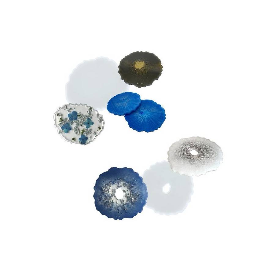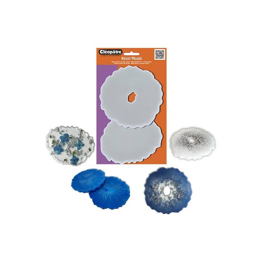 Voir plusLe Résin'Mould est un moule silicone de haute qualité pour la résine, il peut être également utiliser avec d'autres matières, tels que du plâtre, du béton ciré, etc… Sa matière spécifique en silicone souple permet une utilisation optimale avec les résines époxy. Les créations se démoulent facilement et la finesse du moule permet de conserver la brillance étincelante des résines. Ces moules permettront de réaliser des géodes et des imitations de tranches d'agates de différentes formes (sous-verre, objet décoratif…). Utilisez la résine Cristal'Diamond et les Color'Resin pour un effet étincelant. Dimensions : 13.5cm x 11cm et 13cm x 12.5cm Quantité nécessaire de résine : 100 ml par modèle