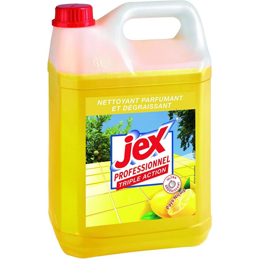 JEX Professionnel dégraissant triple action Pays Niçois 5L Nettoie, dégraisse, parfume durablement Dégraisse et garantit un brillant éclatant Elimine les taches tenaces Laisse un parfum agréable de longue durée