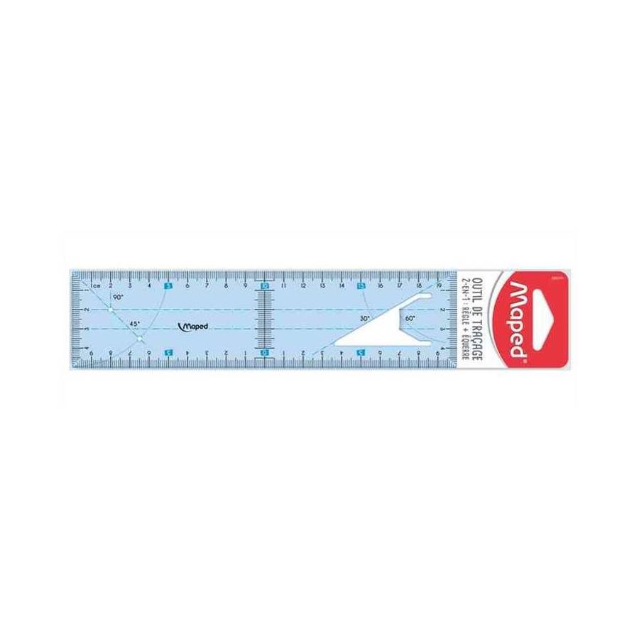 Maped Outil de traçage règle-équerre 2 en 1 bleu transparent 20 cm Fonctions équerre + tracé de parallèle + repères d'd'angles En plastique souple Incassable