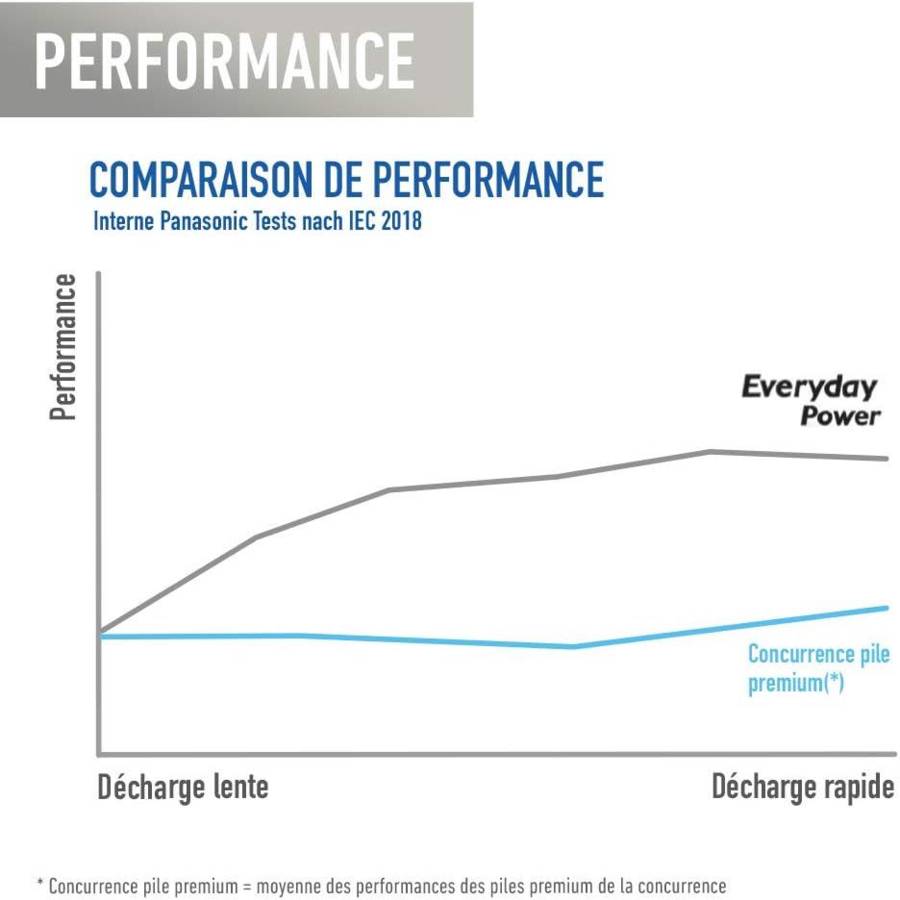 Voir plusEVERYDAY POWER SILVER Batterie AA x 20 Pièces Piles EVERYDAY POWER de longue durée pour tous les jours La pile alcaline EVERYDAY POWER de Panasonic est idéale pour les appareils fréquemment utilisés dont la consommation d'énergie est moyenne ou faible, et qui sont utilisés tous les jours. Ils sont particulièrement appréciés dans le monde entier pour les moniteurs pour babyphones, les balances, les montres, les télécommandes, etc. Les piles EVERYDAY POWER sont réputées pour leur haut niveau de sécurité, de puissance, de durabilité - et pour leur prix. Grâce à sa structure interne unique et à son revêtement à trois couches, la technologie en constante évolution de Panasonic garantit une énergie fiable. Les piles peuvent donc être utilisées en toute sécurité dans des appareils à faible consommation d'énergie. Les piles peuvent donc être utilisées en toute sécurité dans des appareils à faible consommation d'énergie. Les améliorations innovantes apportées aux piles Panasonic EVERYDAY POWER garantissent une longue durée de vie et un stockage sûr.