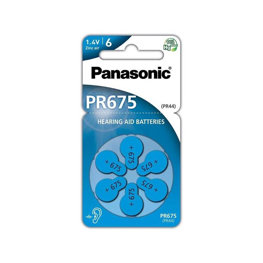 Pack 6 Piles PR675 Zinc Air pour appareils auditifs (PR44)