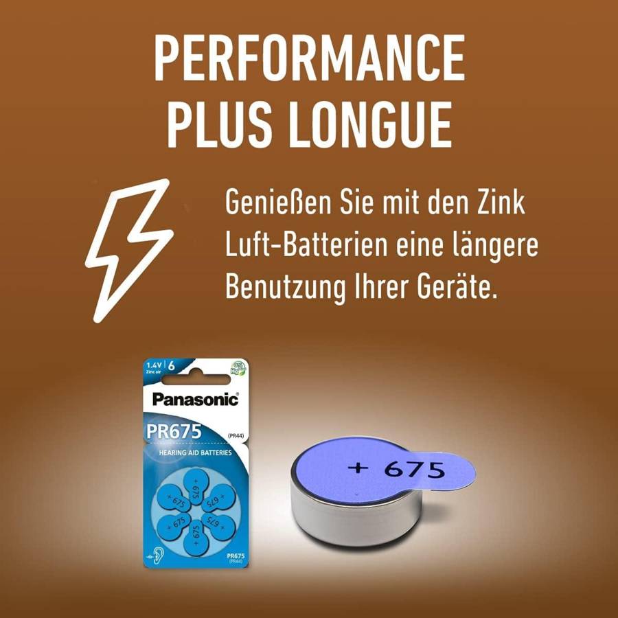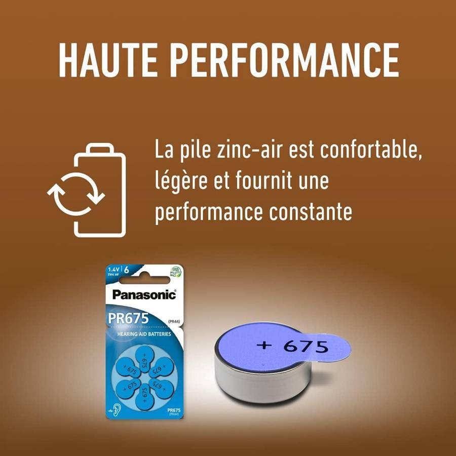 Voir plusLes piles Zinc Air offrent un niveau de puissance élevé et constant et sont parfaitement adaptées à la dernière génération d'appareils auditifs Bluetooth Ces piles sont idéales pour faire fonctionner les mini appareils auditifs BTE (derrière l'oreille) La pile Zinc Air fournit une alimentation fiable dans différentes conditions thermiques, afin que les utilisateurs puissent profiter plus longtemps des activités de plein air Pour l'utiliser : retirez la languette et attendez environ 60 secondes. Cela active la pile en permettant à l'oxygène d'entrer. Panasonic développe constamment des idées innovantes pour réduire la quantité de matériaux nocifs, et c'est pourquoi la pile Zinc Air contient 0 % de mercure.