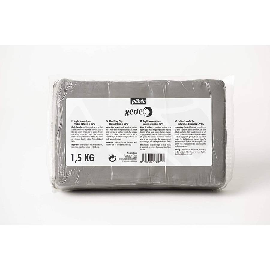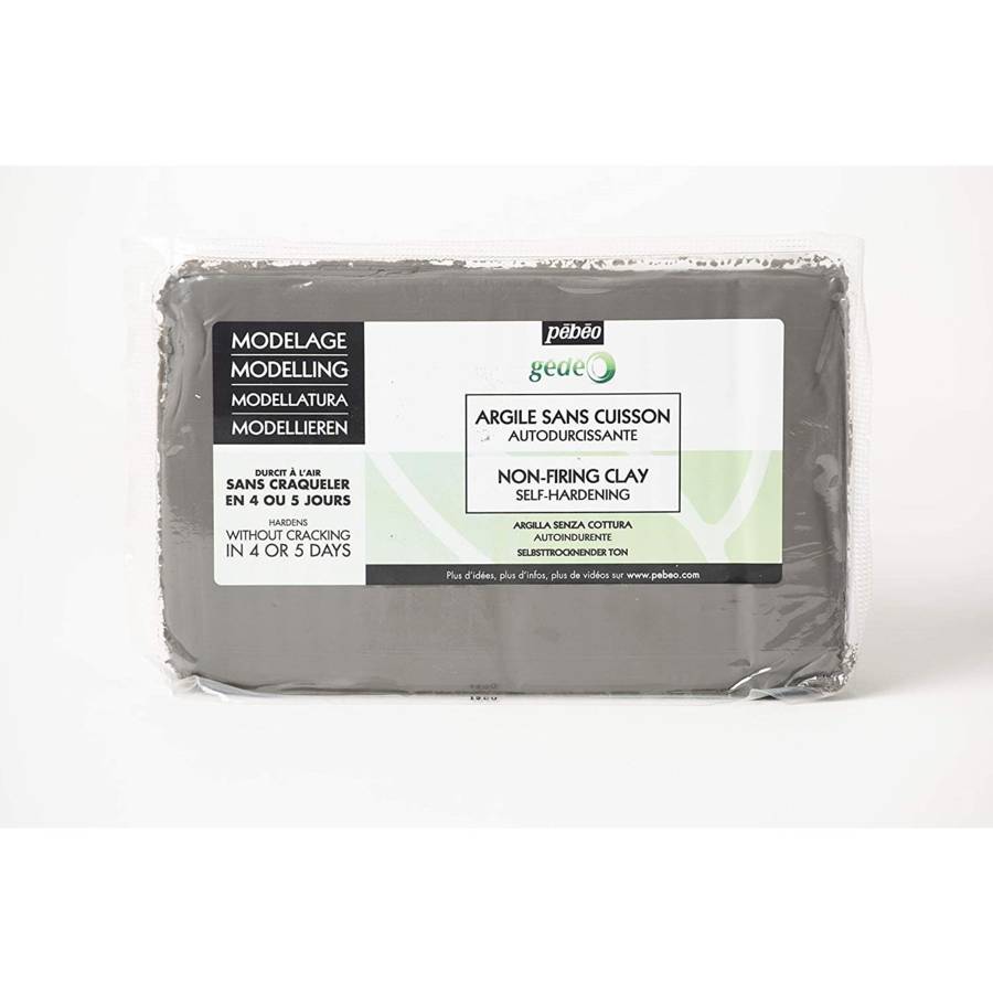 Voir plusARGILE SC GRIS BETON 1.5KG PAINS ARGILE SANS CUISSON AUTODURCISSANTE - Prête à l'emploi, cette terre autodurcissante durcit sans cuisson en 4 ou 5 jours sans craqueler : la présence de fibres naturelles de cellulose permet un séchage sans fissures, même sur de grandes surfaces. Une fois sèche, elle s'avère très solide. Couleur : Gris béton. UN MATÉRIAU POLYVALENT - La nature argileuse de ce matériau lui confère une très bonne plasticité pour le modelage sans cuisson et permet de réaliser des détails très fins. Toutefois, cette pâte à modeler durcissante peut également être moulée (nous recommandons des moules de plâtre) et tournée en tour de potier. UNE INFINITÉ DE FINITIONS - Une fois sèche, cette argile autodurcissante grise peut être peinte, vernie, polie, taillée ou perforée. Elle peut aussi être imperméabilisée après séchage complet (4 à 5 jours) pour réaliser des récipients étanches non alimentaires. EQUIPEMENT MINIMAL - Une fois l'objet fini, il vous suffit de le laisser sécher à l'air libre 4 à 5 jours. Le séchage de votre terre chamotte peut être accéléré, en l'exposant devant une source de chaleur. Il est possible d'augmenter la dureté en finalisant le séchage dans un four domestique entre 100 et 110ºC. LONGUE CONSERVATION - Cette terre modelage reste inaltérable dans ses conditions originales d'emballage pendant au moins 2 ans. Tant qu'elle n'a pas séché, cette pâte durcissante à l'air peut être réutilisée et conservée indéfiniment dans un linge humide à l'intérieur d'un sac en plastique hermétiquement fermé.
