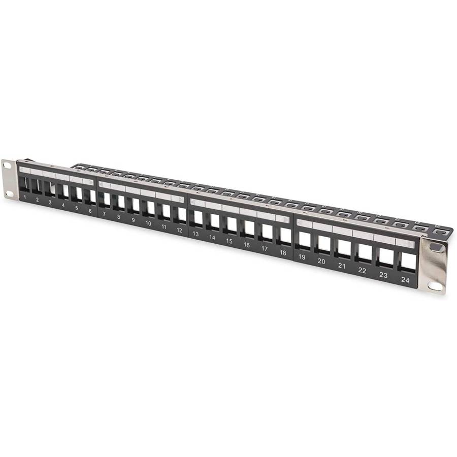 Panneau de Brassage Blindé 24 ports 1U Noir avec Champs d'étiquette