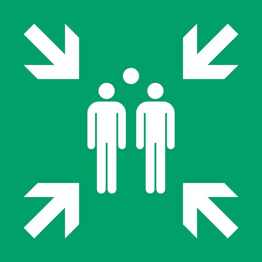 Pictogramme ISO en PP recyclable facile à monter pour indiquer l'emplacement d'un lieu de rassemblement