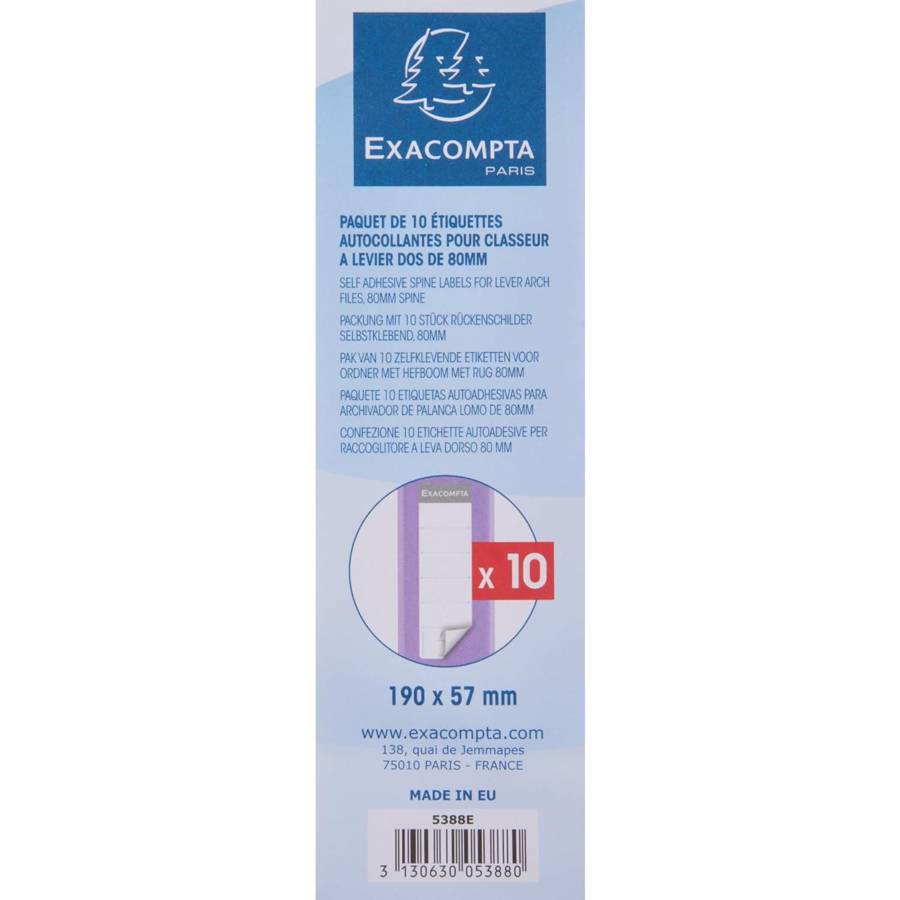 Exacompta Paquet de 10 étiq. dos de C.L. 80mm