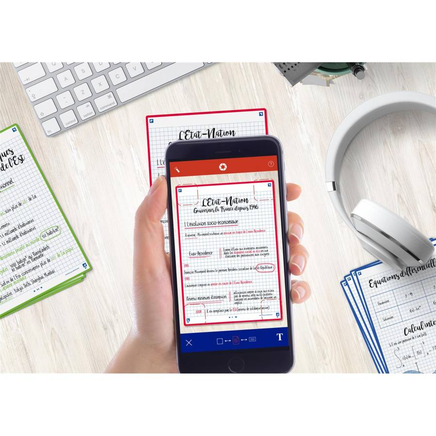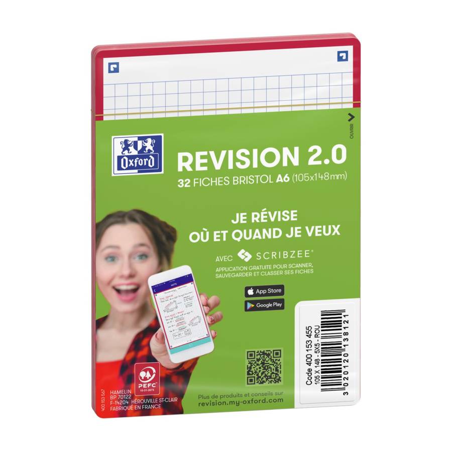 Voir plusVous voulez réviser où et quand vous voulez ? Grâce à l'application Scribzee®, vos fiches de révision seront sauvegardées dans le cloud. Elles seront disponibles à tout moment pour réviser partout et même suivre l'avancement de vos révisions ! FORCES Révisez où et quand vous voulez ! Scribzee® est une application gratuite pour scanner, sauvegarder et classer vos fiches dans votre smartphone. Vous pourrez y accéder à tout moment pour réviser partout et depuis tous vos appareils connectés. Suivez votre progression dans Scribzee® Une fois scannées, vous pourrez attribuer un statut à vos fiches : rouge « j'ai lu rapidement », orange « j'y suis presque » ou vert «je maîtrise ». Un véritable tableau de bord pour savoir ce qu'il vous reste à réviser ! Une couleur par matière Les fiches REVISION 2.0 sont disponibles en 4 couleurs différentes de cadres pour vous permettre de classer et de mieux repérer vos fiches par thème ou matière. CARACTÉRISTIQUES Pack de 32 fiches Bristol Format vertical 10,5 x 14,8 cm (A6) petits carreaux cadre rouge Recto et verso identiques