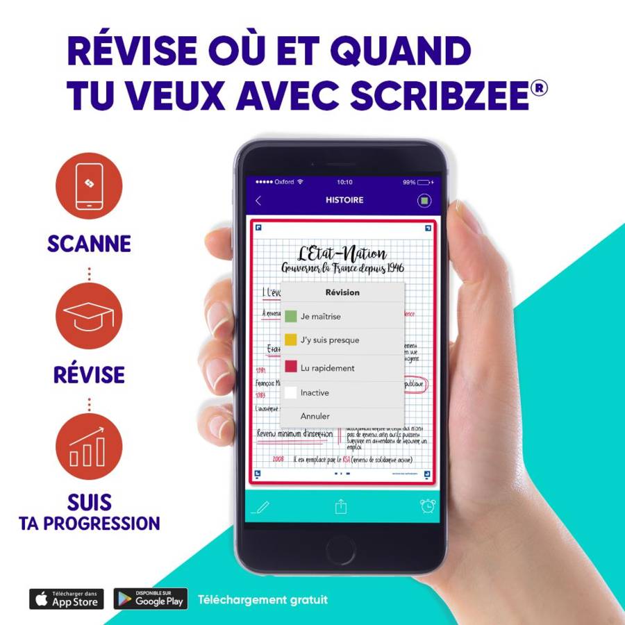 Vous voulez réviser où et quand vous voulez ? Grâce à l'application Scribzee®, vos fiches de révision seront sauvegardées dans le cloud. Elles seront disponibles à tout moment pour réviser partout et même suivre l'avancement de vos révisions ! FORCES Révisez où et quand vous voulez ! Scribzee® est une application gratuite pour scanner, sauvegarder et classer vos fiches dans votre smartphone. Vous pourrez y accéder à tout moment pour réviser partout et depuis tous vos...