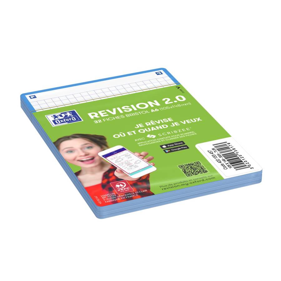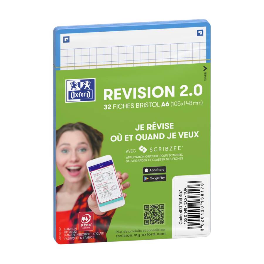 Voir plusVous voulez réviser où et quand vous voulez ? Grâce à l'application Scribzee®, vos fiches de révision seront sauvegardées dans le cloud. Elles seront disponibles à tout moment pour réviser partout et même suivre l'avancement de vos révisions ! FORCES Révisez où et quand vous voulez ! Scribzee® est une application gratuite pour scanner, sauvegarder et classer vos fiches dans votre smartphone. Vous pourrez y accéder à tout moment pour réviser partout et depuis tous vos appareils connectés. Suivez votre progression dans Scribzee® Une fois scannées, vous pourrez attribuer un statut à vos fiches : rouge « j'ai lu rapidement », orange « j'y suis presque » ou vert «je maîtrise ». Un véritable tableau de bord pour savoir ce qu'il vous reste à réviser ! Une couleur par matière Les fiches REVISION 2.0 sont disponibles en 4 couleurs différentes de cadres pour vous permettre de classer et de mieux repérer vos fiches par thème ou matière. CARACTÉRISTIQUES Pack de 32 fiches Bristol Format vertical 10,5 x 14,8 cm (A6) petits carreaux cadre turquoise Recto et verso identiques