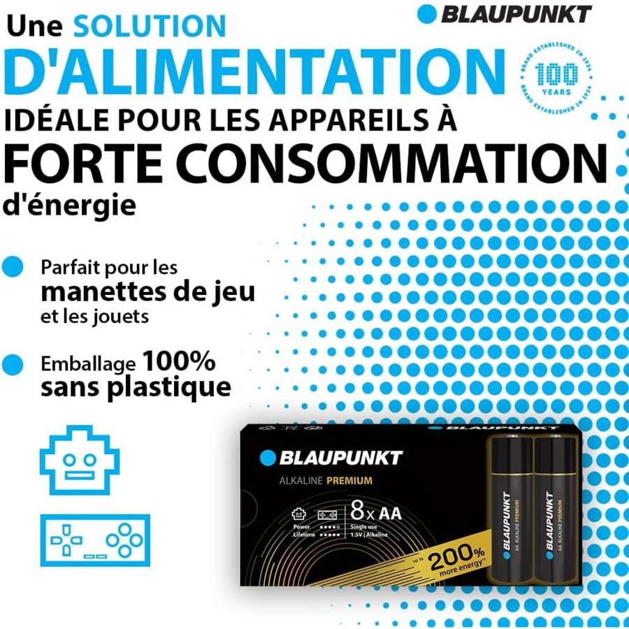 Cette pile alcaline Premium offre jusqu'à 10 ans de protection* et la qualité de la marque mondiale Blaupunkt