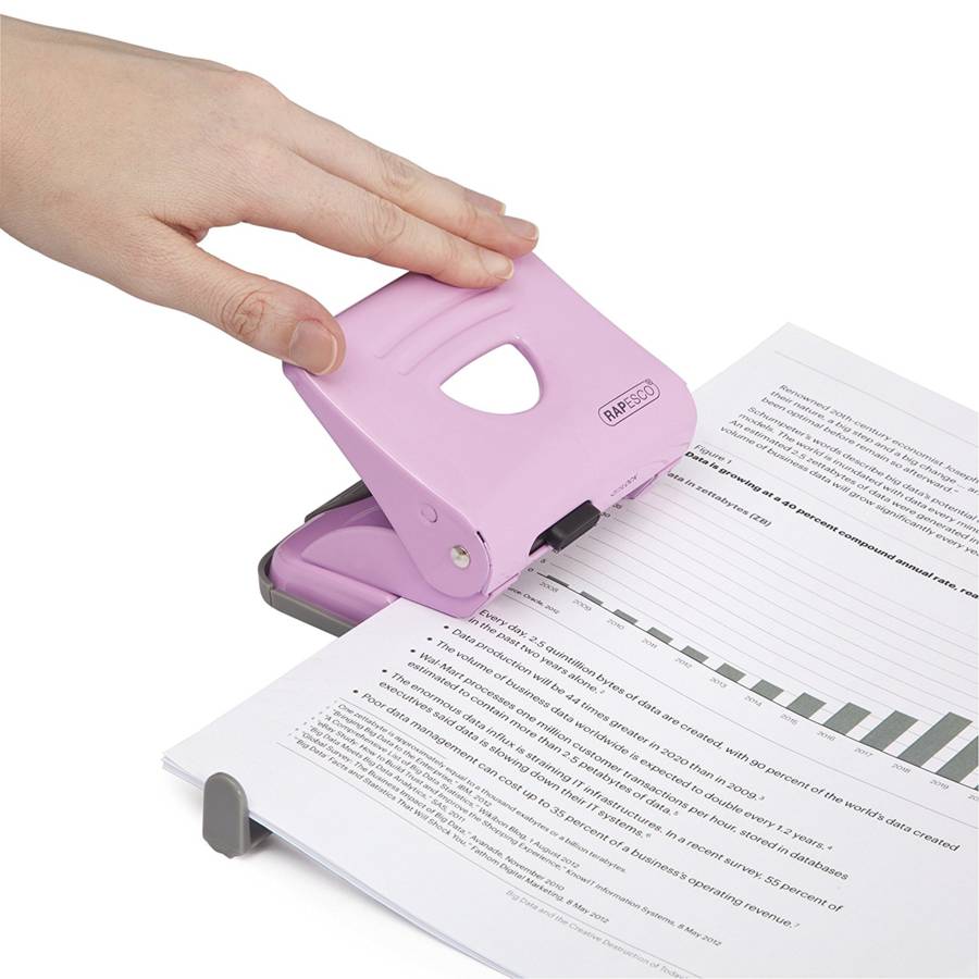 Construction tout en métal avec des poinçons renforcés et une poignée de précision de pression pour une perforation constante et durable Tiroir à confettis déployable pour un vidage facile et rapide Poignée verrouillable pour un rangement à plat facile Fenêtre de personnalisation Guide papier calibré et ajustable pour un positionnement précise et consistent des trous