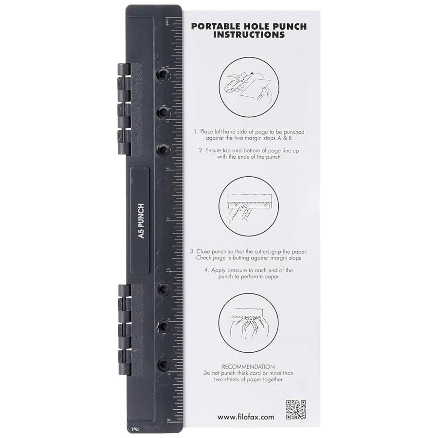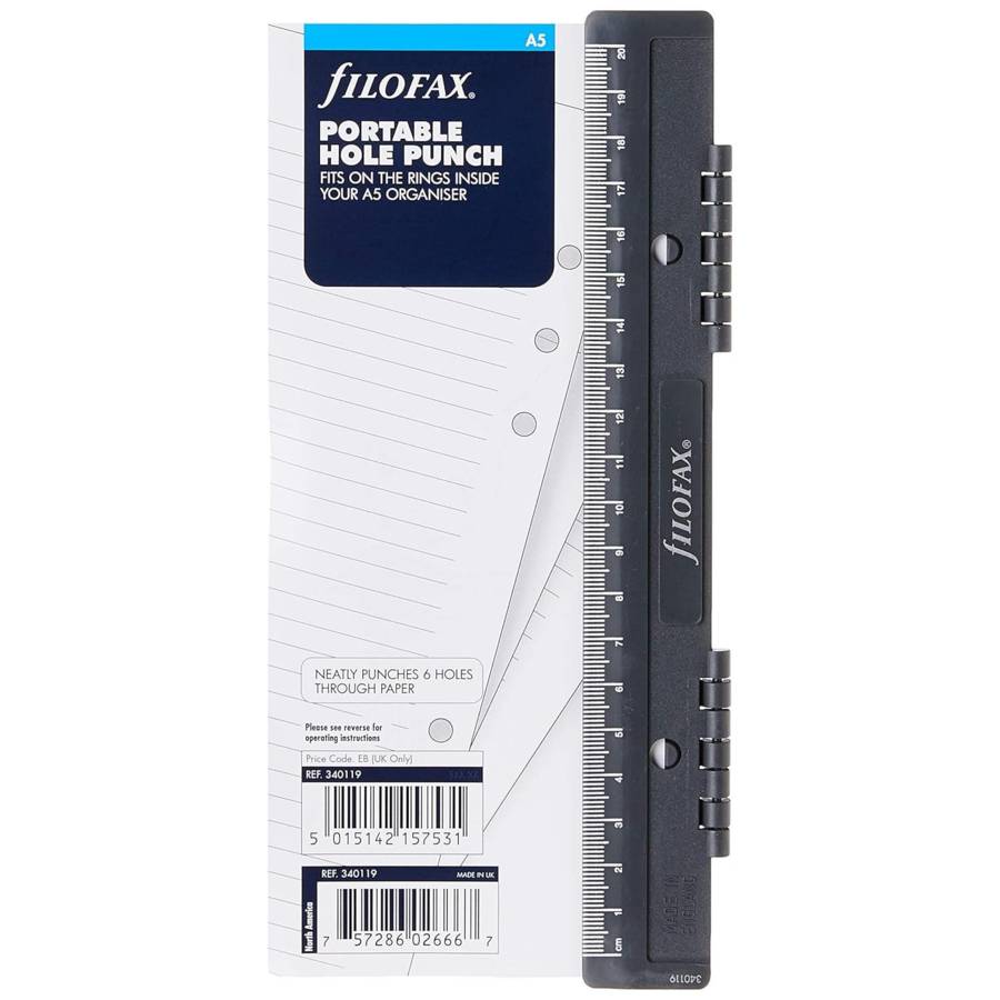Perforatrice plastique nomade à emporter partout avec vous. Compacte, elle permet de perforer une feuille à la fois et se range sur les anneaux de votre agenda. Ne convient pas aux carte bristol ou au papier épais.