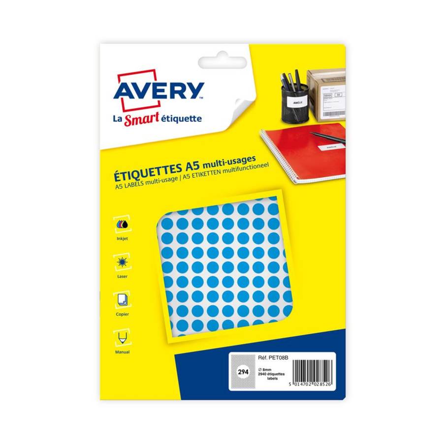 Des pastilles rondes de couleur pour de multiples utilisations ! Pour signaler, identifier, classer, codifier, repérer, facilement et de façon précise les petits et grands produits, ces pastilles existent en 4 tailles (du diamètre 8 au diamètre 30) et en 6 couleurs (blanc, bleu, vert, rouge, jaune et assortie). Leur adhésif permanent permet un étiquetage longue durée. Inscriptibles ou imprimables, elles sont présentées en planche A5 dans un étui pratique et résistant.