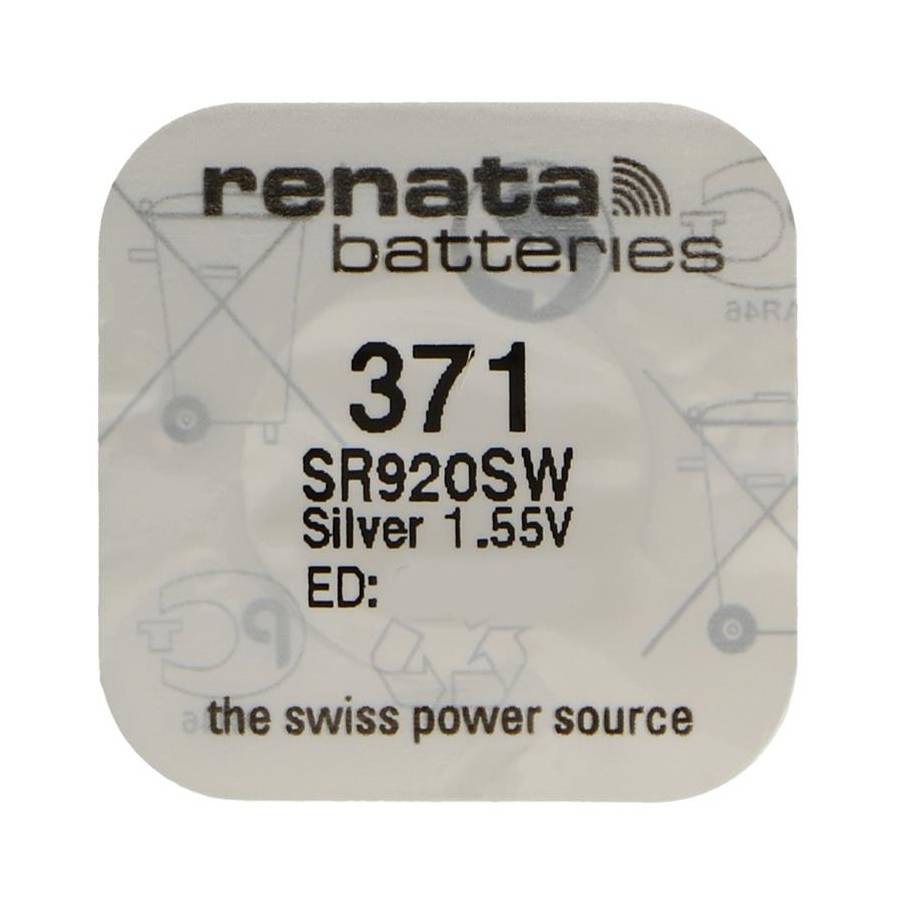 Pile bouton Renata 371 / SR920 SW 0% mercure Données techniques Capacité 40 mAh Tension 1.55 V Poids 0.59 g Dimensions Diamètre 9.5 mm Hauteur 2.0 mm Cross Reference Guide Renata 371 (OEM) SR920SW SR920SW SR920SW SR920SW 371 V371 371 D 370/371 280-31 SB-AN Fiche produit relative aux qualités et caractéristiques environnementales Informations fournies conformément à l'article 13.1 de la Loi française n° 2020-105...