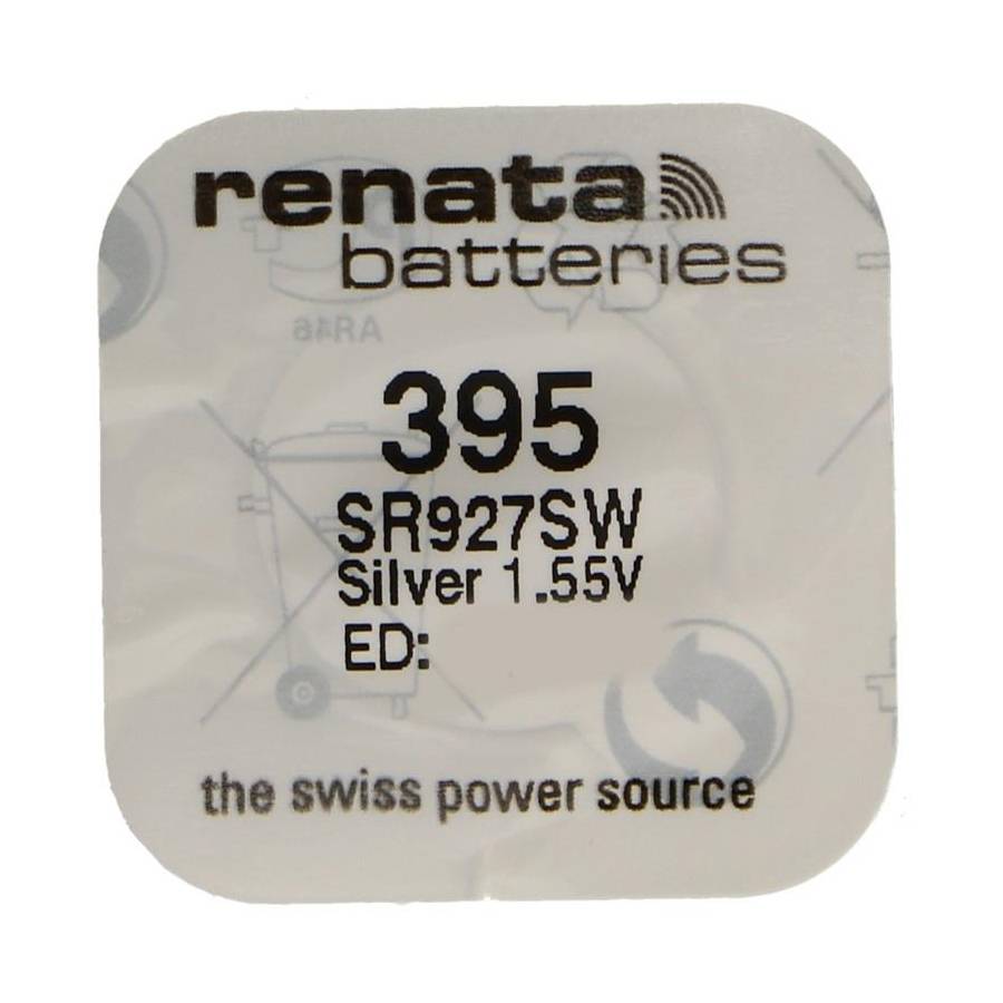 Pile bouton Renata 395 / SR927SW 0% mercure Données techniques Capacité 55 mAh Tension 1.55 V Poids 0.76 g Dimensions Diamètre 9.5 mm Hauteur 2.7 mm Cross Reference Guide Renata 395 (OEM) SR927SW SR927SW SR927SW SR927SW 395 V395 395 D 395/399 LA 280-48 SB-AP/DP Fiche produit relative aux qualités et caractéristiques environnementales Informations fournies conformément à l'article 13.1 de la Loi française n°...