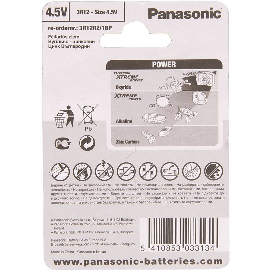 Panasonic - Special Power Capacité: 1800mAh Voltage: 4,5 Volt Système: Zink-Kohle-Batterie Taille: 3R12 (Flach) Poids: 107 gr