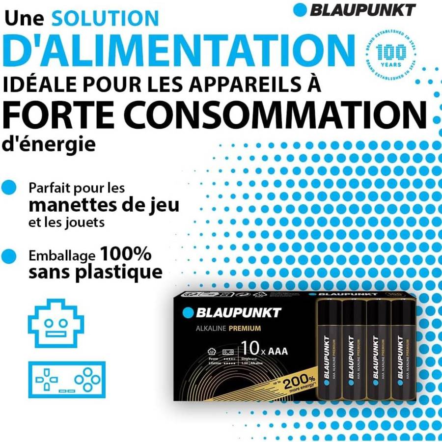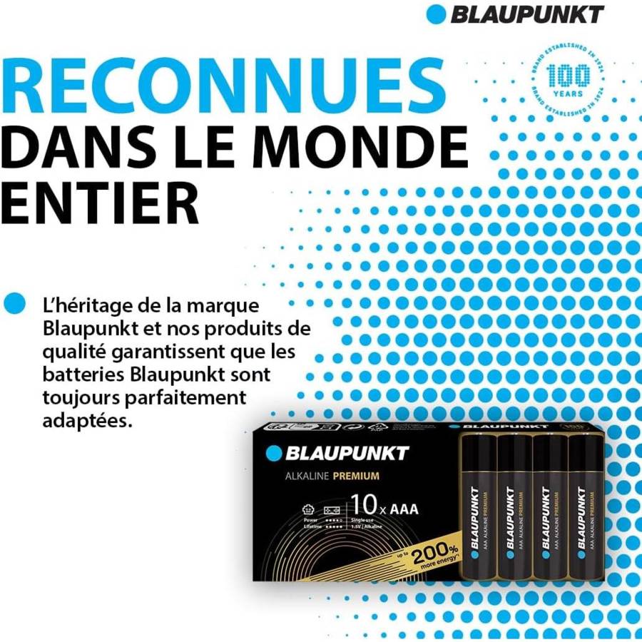 Cette pile alcaline Premium offre jusqu'à 10 ans de protection* et la qualité de la marque mondiale Blaupunkt