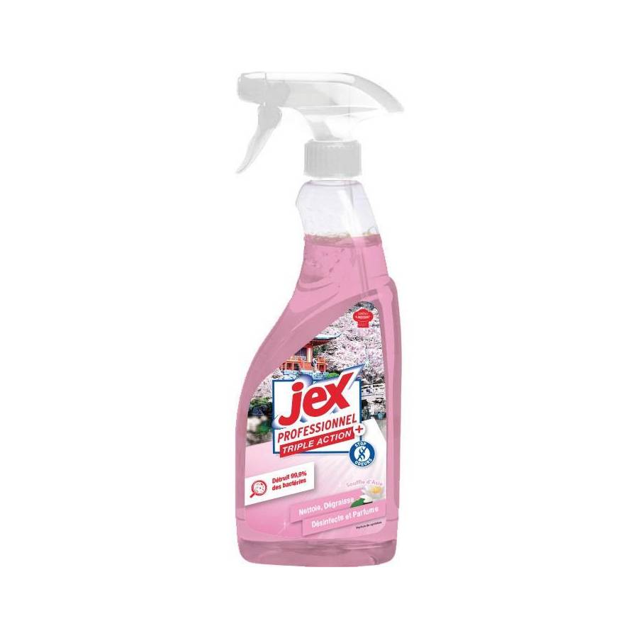 pistolet 750 ml Jex Professionnel Triple Action prêt à l'emploi Souffle d'Asie 4 en 1 : Nettoie, désinfecte, dégraisse et parfume durablement. Détruit les mauvaises odeurs Technologie Stop Odeurs 4 en 1 : Nettoie, désinfecte, dégraisse et parfume durablement Détruit les mauvaises odeurs de cuisines, poubelles, sanitaires, ammoniaque grâce à la technologie stop Odeurs. Capacité désinfectante renforcée : bactéricide, levuricide, virucide Bactéricide selon les normes...