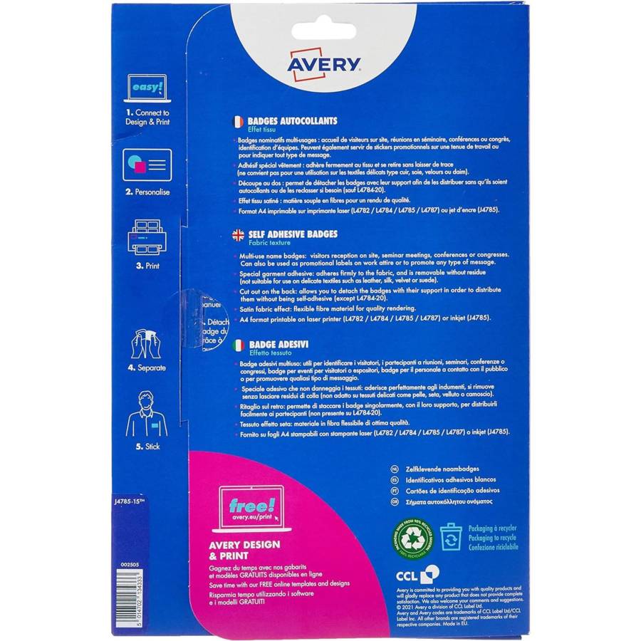 Pochette 150 badges adhésifs en polyester, impression jet d'encre Blanc 80x50mm