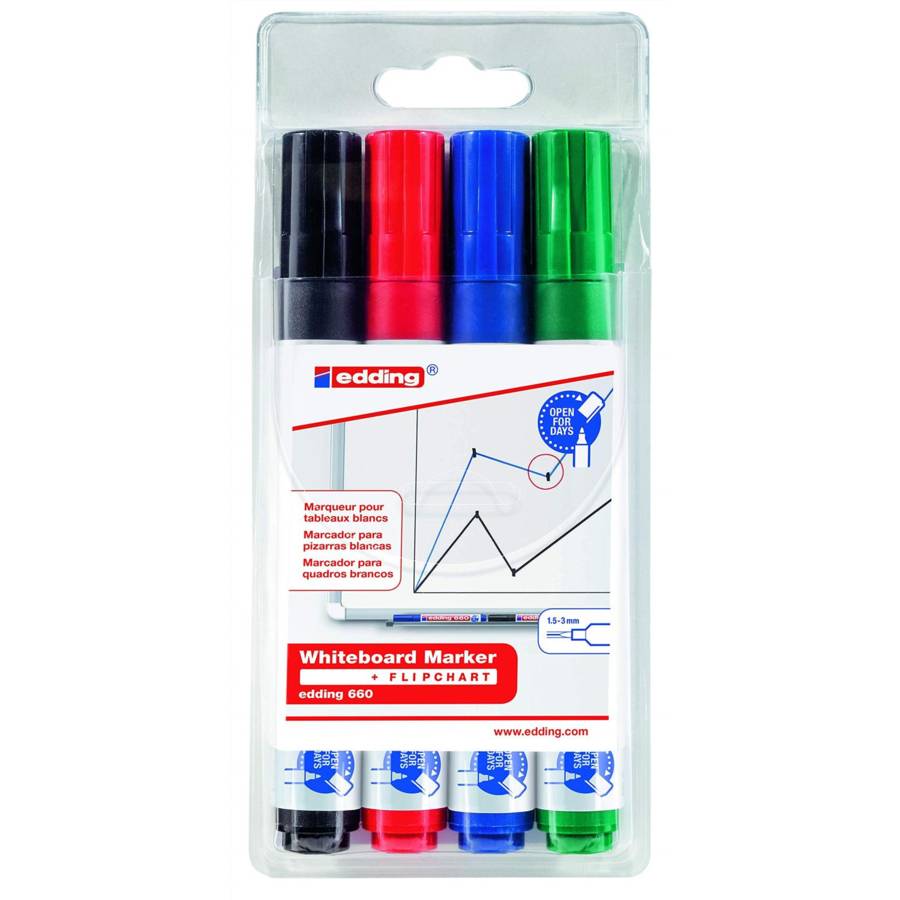 Edding - Pochette de 4 marqueurs effaçables à sec pointe ogive assortis E-660 4304000