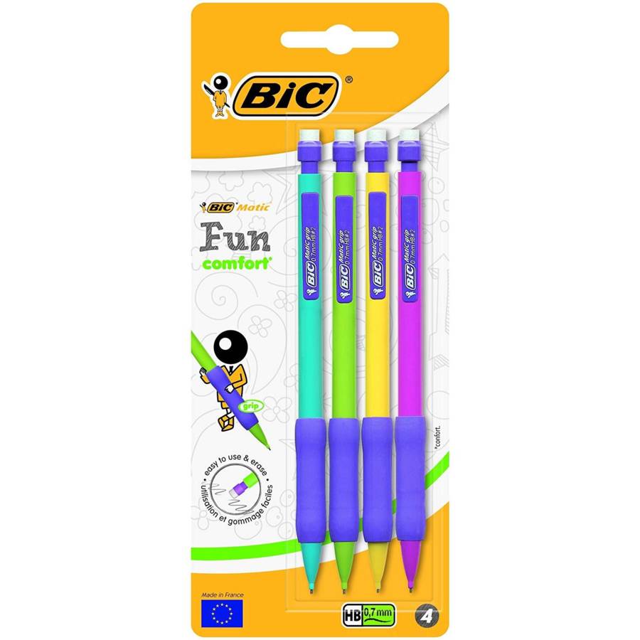 BIC Matic Original Comfort - Corps bicolore - Grip caoutchouc - Gomme - Contient 3 mines HB 0,7 mm