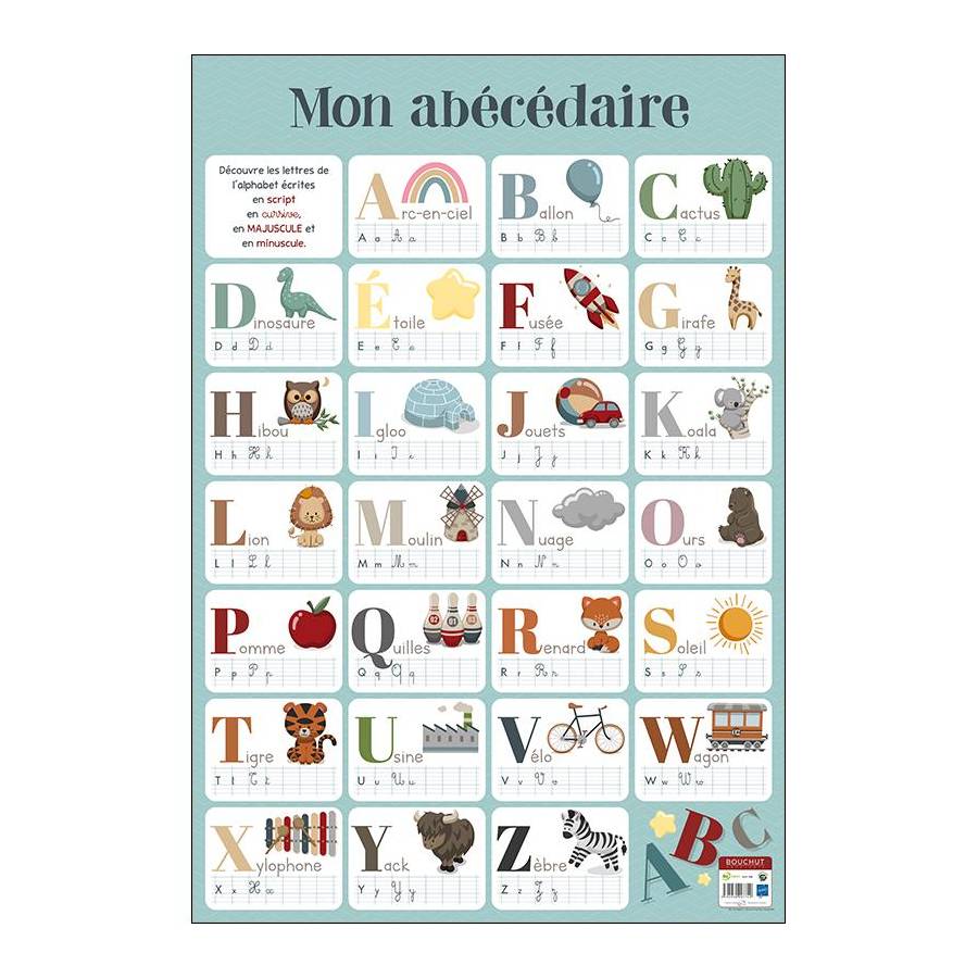 Poster Abécédaire Un produit ludique spécialement conçu pour un apprentissage facile de l'alphabet Format : 52 x 76 cm Souple pelliculé effaçabe à sec pour une meilleure résistance à l'usage.