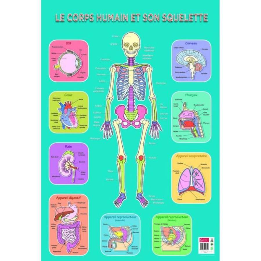 Poster pédagogique "Le corps humain et son squelette" 52 x 76 cm