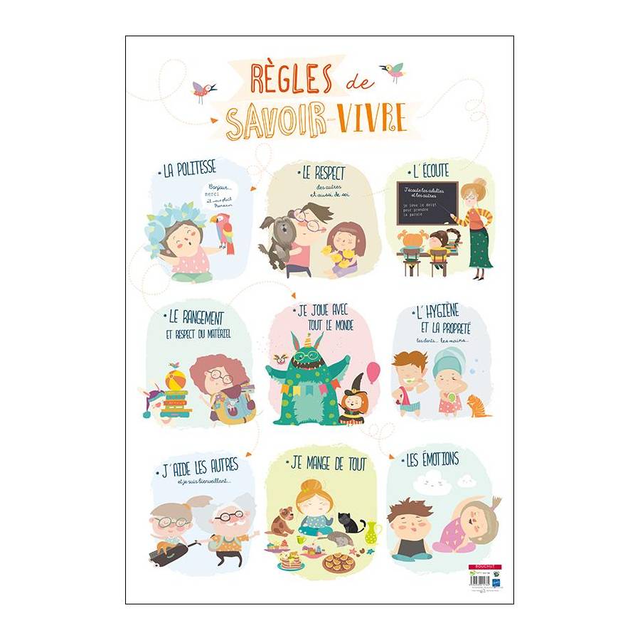 Un produit ludique spécialement conçu pour un apprentissage facile des règles de savoir-vivre Format : 52 x 76 cm Souple pelliculé effaçabe à sec pour une meilleure résistance à l'usage