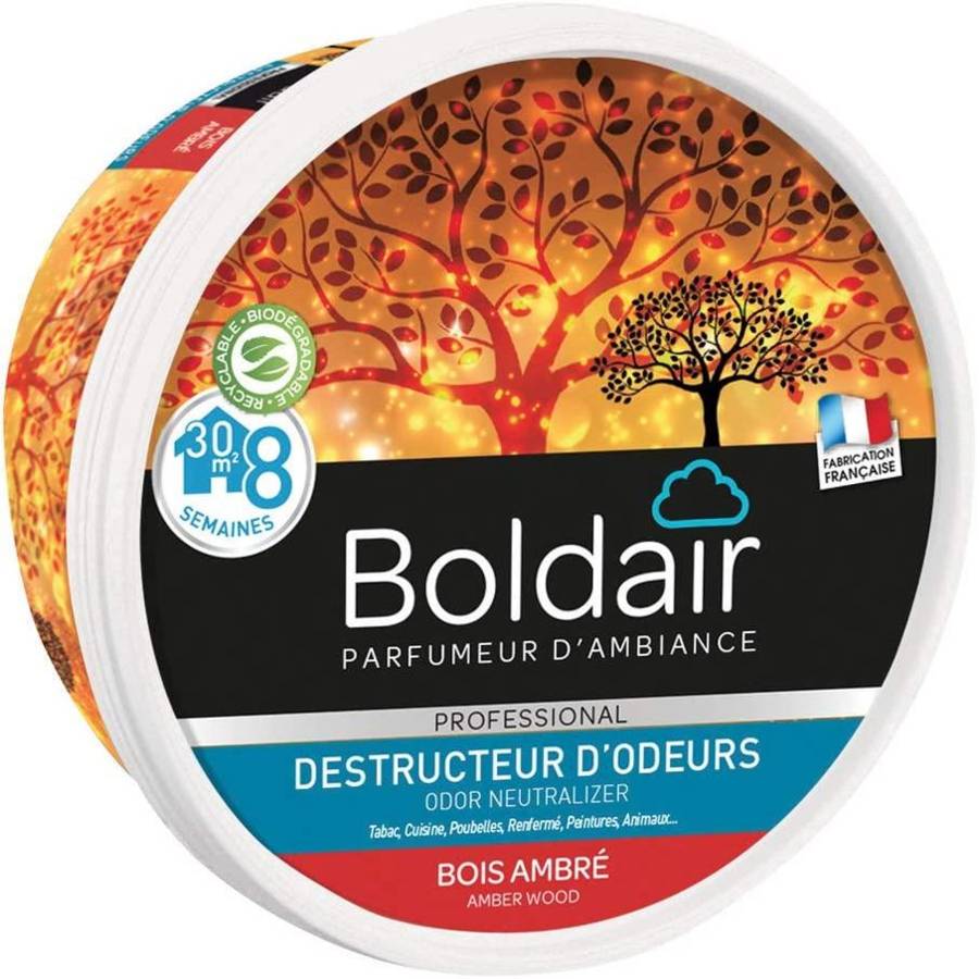 Voir plusDESTRUCTEUR D'ODEUR : Technologie unique qui fonctionne par évaporation de ses actifs naturels lorsque le pot est ouvert et qui vient détruire les molécules de mauvaises odeurs. A base d'actifs naturels, le gel solide diminue au fur et à mesure de l'utilisation MULTI APPLICATIONS & LONGUE DUREE: Applicable pour des besoins domestiques ( Cuisine, WC, Chambre, Penderies, Chaussures, Bureau, Garage, Animaux, Poubelle, Voiture…) mais aussi Professionnels (Collectivités, CHR, Maisons de retraite, EHPAD, Hôpitaux...), il couvre une surface de 30m2 pendant 8 semaines PARFUM SUBTIL Ambré, note délicate, boisée et chaleureuse MODE D'EMPLOI : Ôter le couvercle, placer le gel Boldair près de la source des mauvaises odeurs et laisser agir. Le gel Boldair couvre une surface de 30 m² pendant 8 semaines. Pour des surfaces plus grandes, utiliser plusieurs pots. Lorsqu'il ne reste qu'un résidu, il est encore efficace, vous pouvez l'effriter et le mettre dans un placard, une armoire ou un sac d'aspirateur. Il s'évaporera naturellement tout en diffusant son parfum Sécurité du produit Contient 1-(1,2,3,4,5,6,7,8-Octahydro-2,3,8,8-tétraméthyl-2-naphthyl)-éthan-1-one (OTNE). Peut produire une réaction allergique. Contient substance sensibilisante. Peut produire une réaction allergique. Avant toute utilisation, lisez l'étiquette et les informations concernant le produit. Nocif pour les organismes aquatiques, entraîne des effets néfastes à long terme.