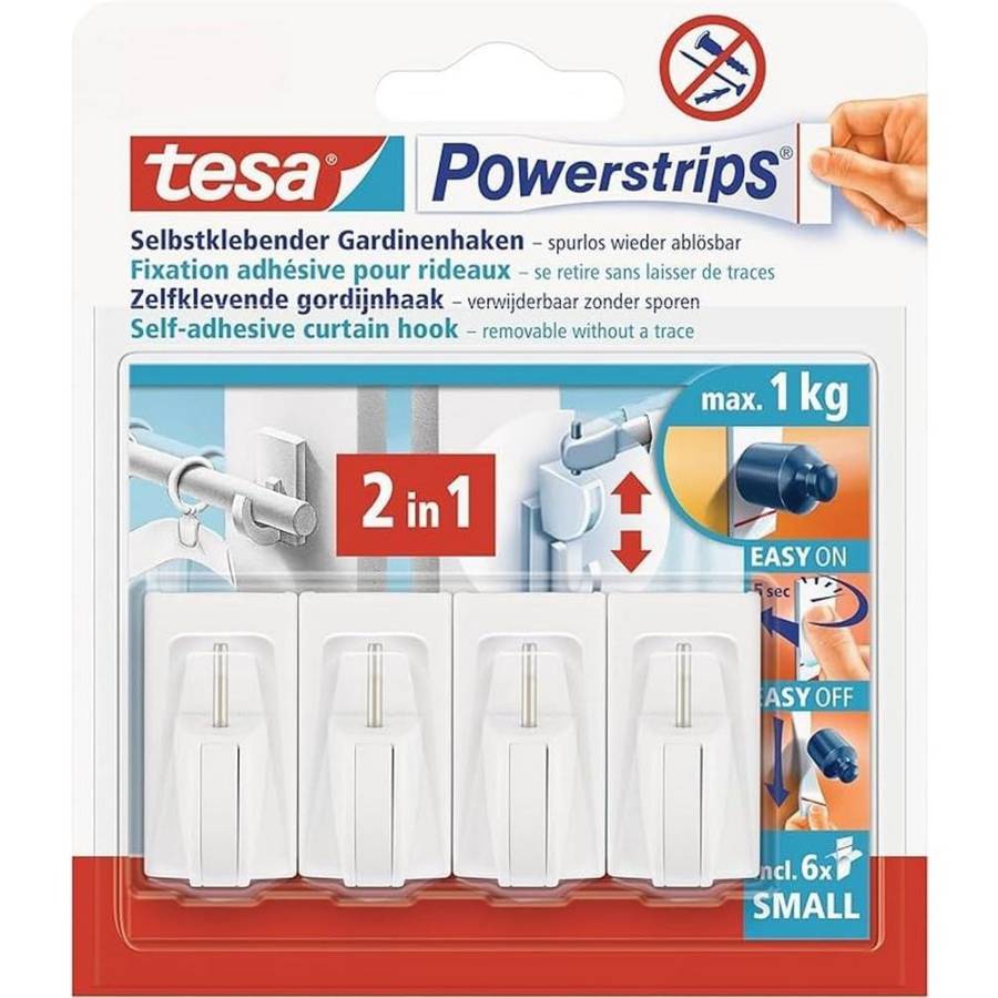 tesa Powerstrips Fixation vario pour rideaux, blanc