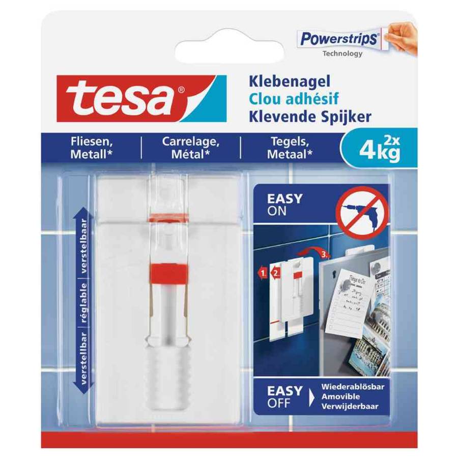 tesa Powerstrips Clou adhésif pour carrelage et métal, 4,0