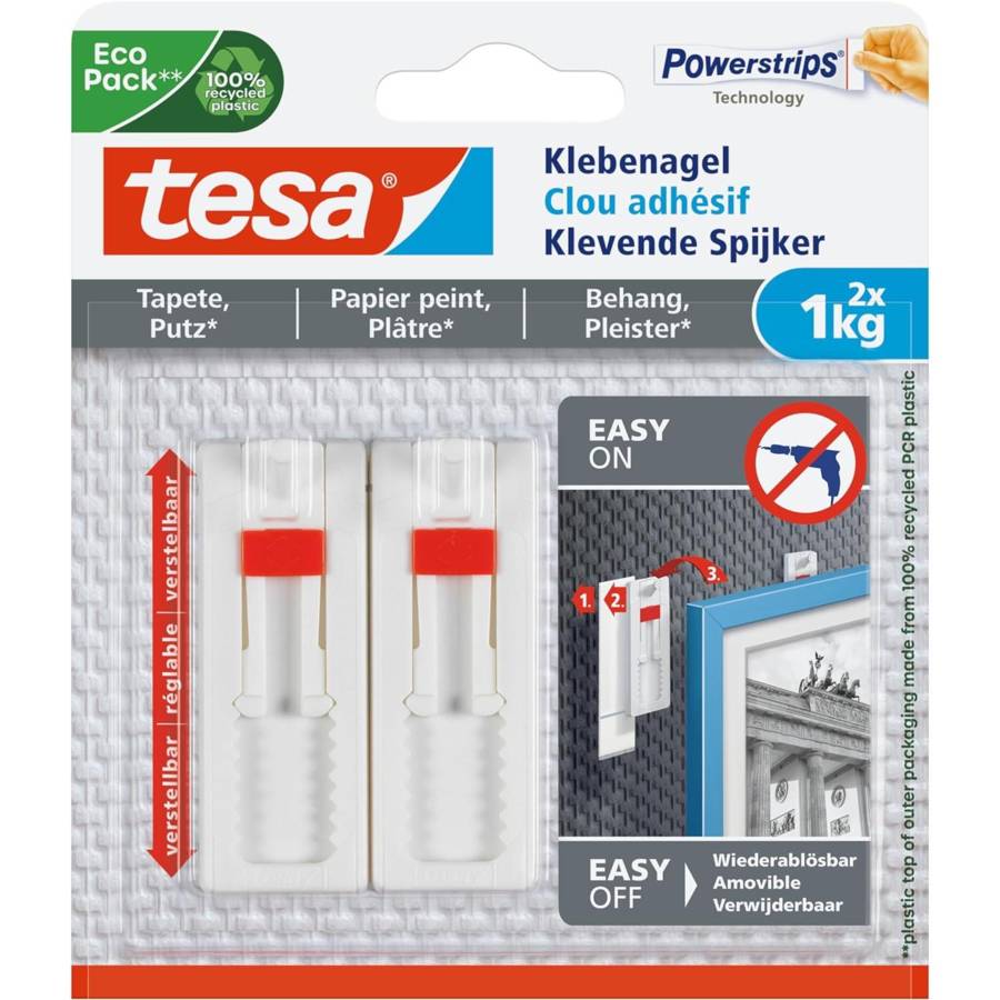 Powerstrips Lot de 2 Clous adhésif Ajustable pour papier peint et plâtre 1Kg