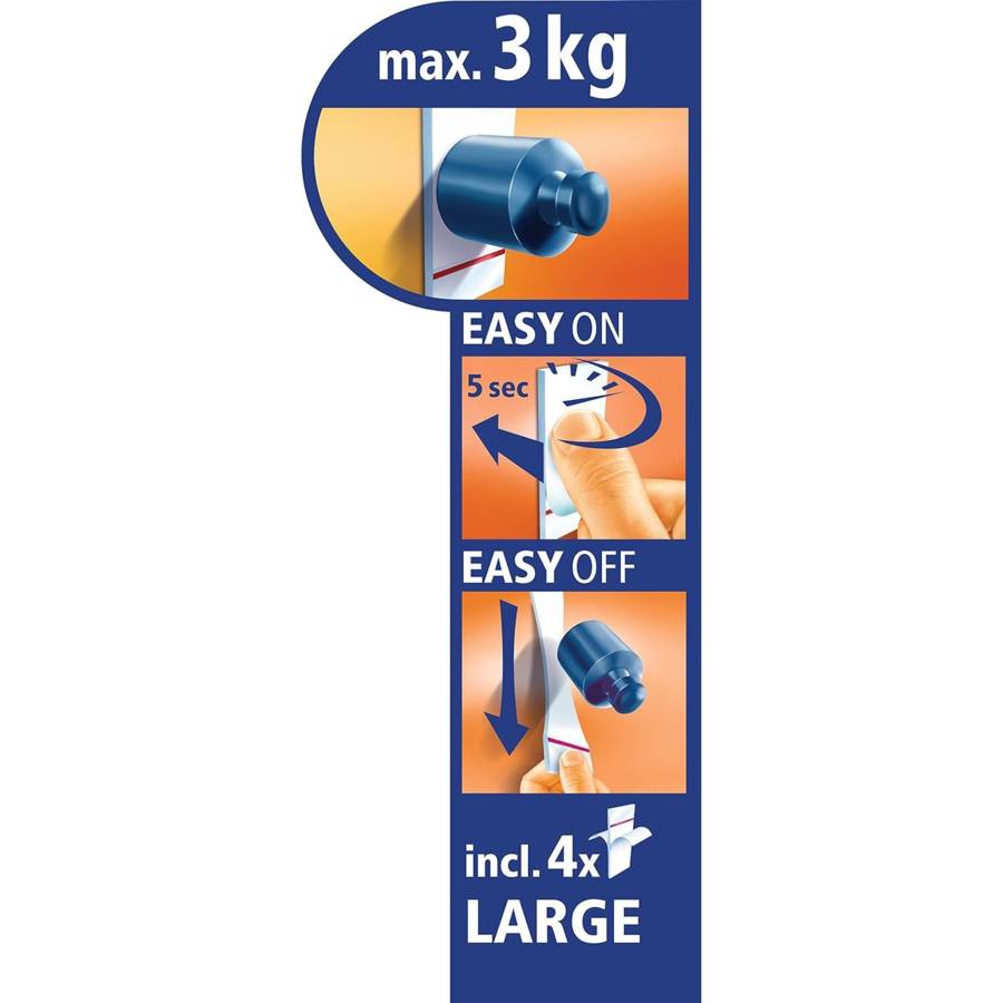 Voir plusPlus besoin de perceuse : Fixation très simple et rapide, sans percer, visser ou clouer - Solution idéale pour ranger facilement vos accessoires de bain et ustensiles de cuisine Maintien solide jusqu'à 3 kg : Espace de rangement fiable pour vos accessoires de douche et ustensiles de cuisine - Plus de gels douches qui traînent Réutilisable : S'enlève sans laisser de résidus gênants sur les murs grâce à la technologie Powerstrips Waterproof - La languette adhésive se retire aisément et sans traces pour être remplacée Imperméable : Spécialement conçu pour fixer des objets dans des zones humides ou directement dans la douche (par exemple, douche, baignoire, etc.) - En plastique de grande qualité Contenu de la livraison : 1 Panier adhésif et 4 languettes Waterproof LARGE - Matériau : métal et plastique blanc