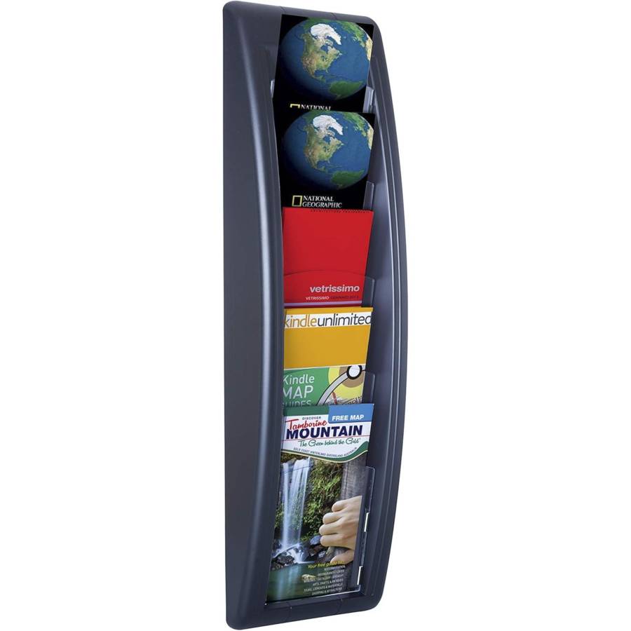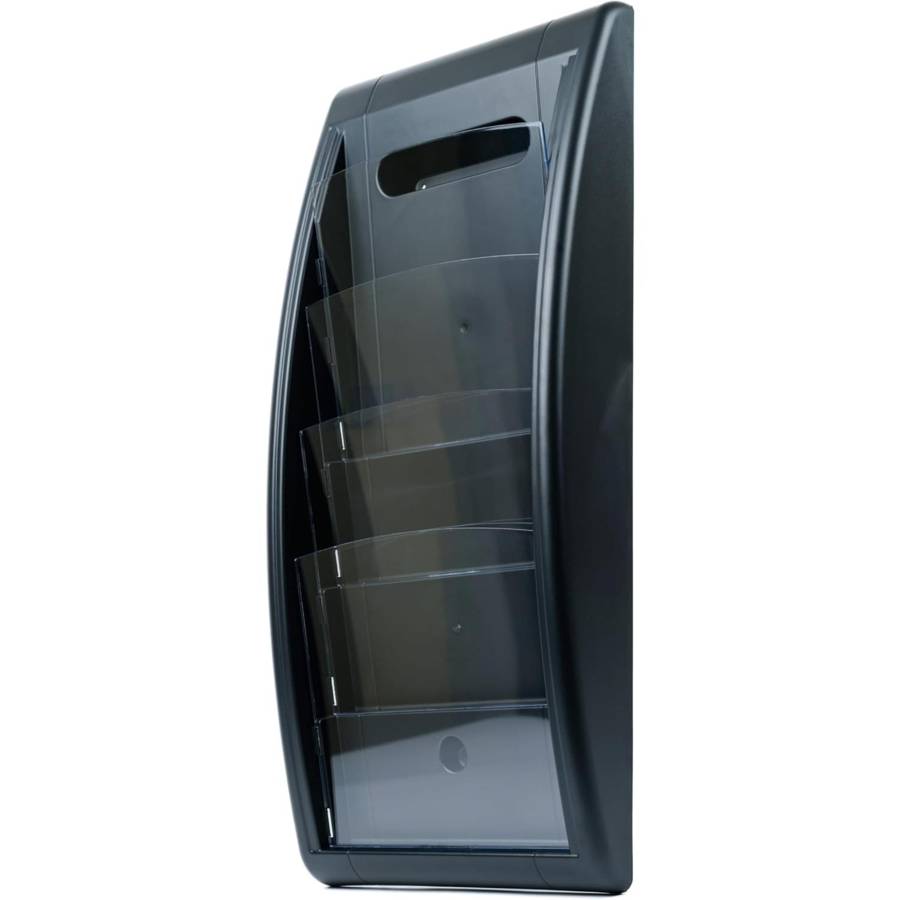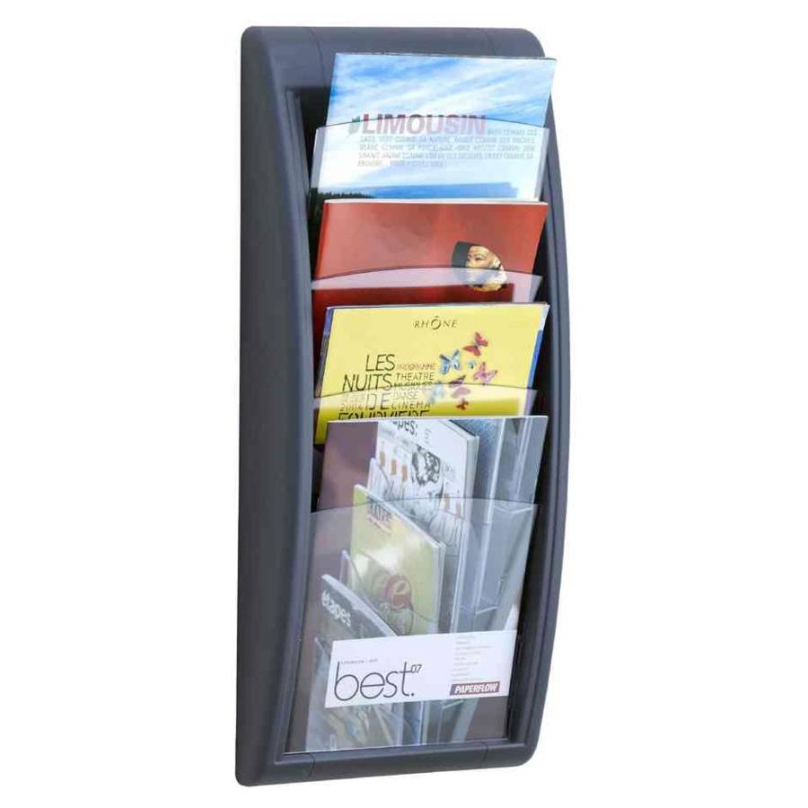 PAPERFLOW Présentoir mural Quick Blick, 1/3 A4, noir en polystyrène, 5 cases, tablettes transparentes, combinable dimensions: (L)181 x (P)95 x (H)650 mm (4062.01)