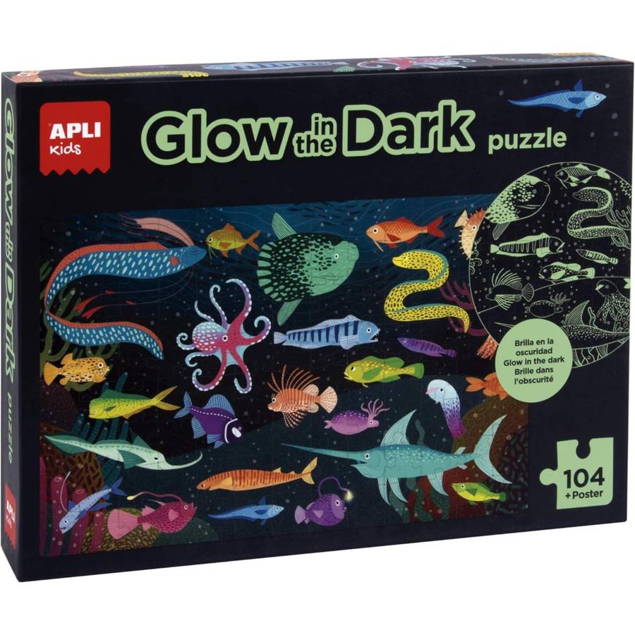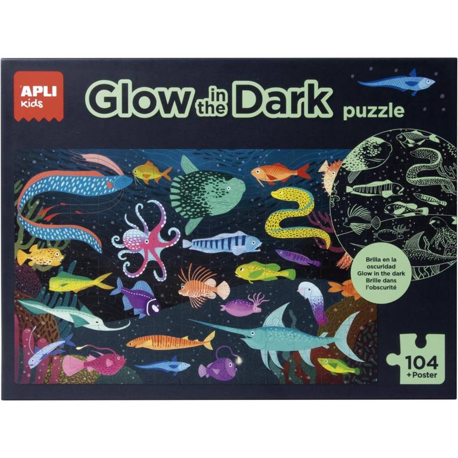 Puzzle fluorescent "brille dans l'obscurité"sur le thème de l'océan. Comprend 104 pièces de 5 x 5 cm. Taille du puzzle : 64,5 x 41,5 cm. Contient une affiche grandeur nature pour un assemblage facile. Une fois le puzzle assemblé, les enfants peuvent éteindre la lumière pour voir les poissons brillés et découvrir les différences. Design exclusif APLI Kids : enfantin, coloré, clair et simple. Manipulation facile pour les plus petits : pièces résistantes, sûres et faciles à...