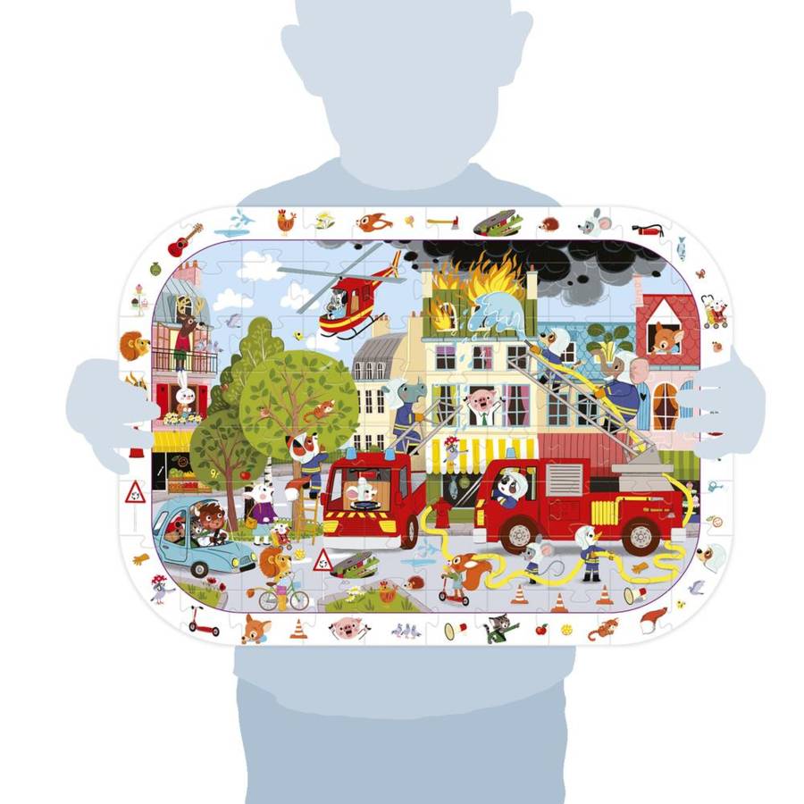 Puzzle d'observation, Pompiers Cherche et trouve ! Construit ce magnifique puzzle de 76 pièces sur le thème des pompiers et retrouve ensuite les éléments cachés dans le décor ! Contenu : 1 puzzle de 76 pièces - 1 poster servant de guide. Certififié PEFC. Conforme aux norme CE. A partir de 5 ans.