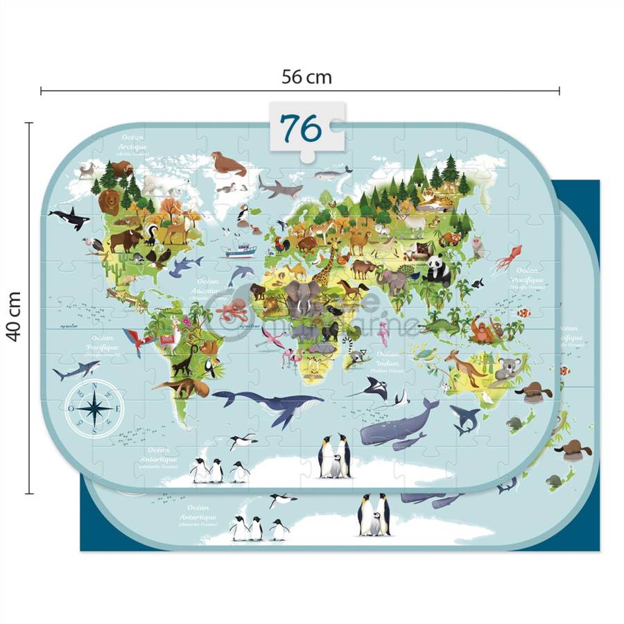 Puzzle éducatif, Planisphère Découvrez les continents et pays avec ce puzzle planisphère de 76 pièces ! D'une forme ovale et doté de 76 pièces fabriquées en carton épais 2,5 mm, il saura ravir tous les explorateurs en herbe ! Un poster est inclus - il vous guide dans la construction de votre puzzle - Dimensions du puzzle : 56x40 cm. Développe réflexion, logique et concentration chez l'enfant à partir de 6 ans. Conforme aux normes CE.