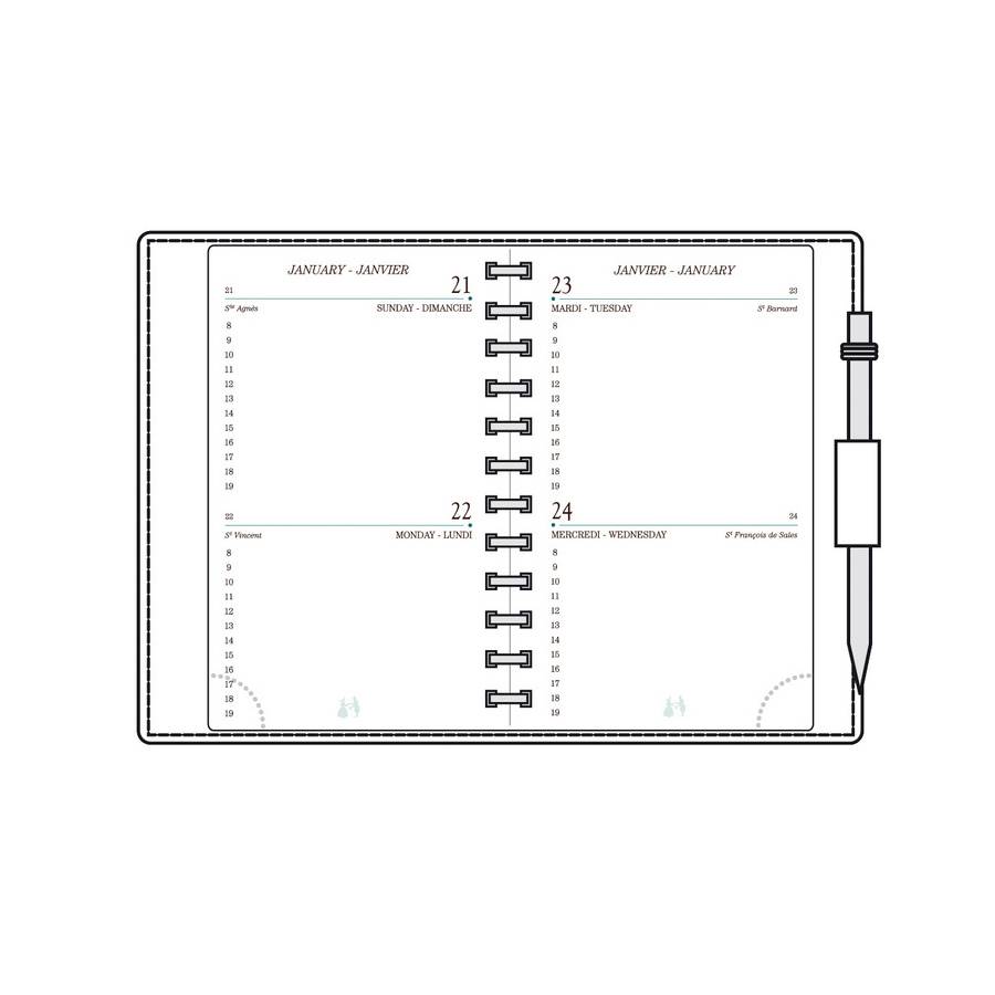 Recharge spiralée agenda AG12R 120x73 mm 2 J / Page Tranche Or