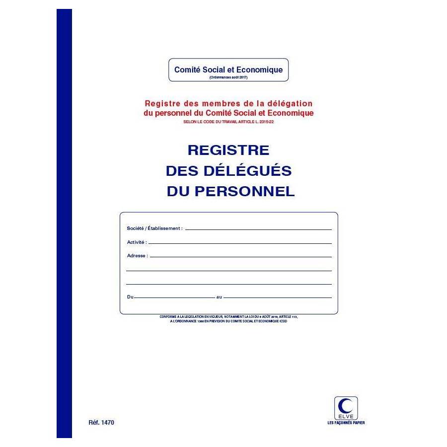 Registre des Délégués du Personnel 40 pages format 320 x 250