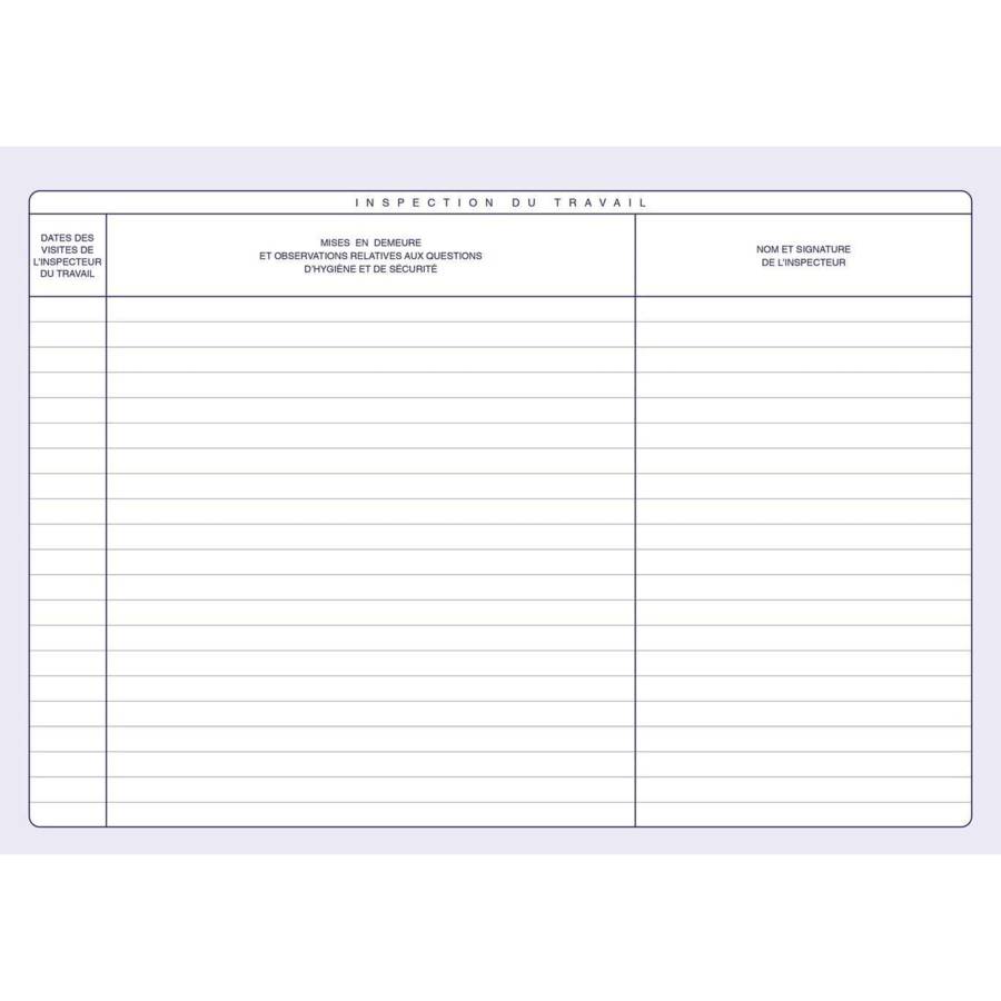 Registre Inspection du Travail/Comm Hygiène et Sécurité - 22 x 28 cm - 20 Pages