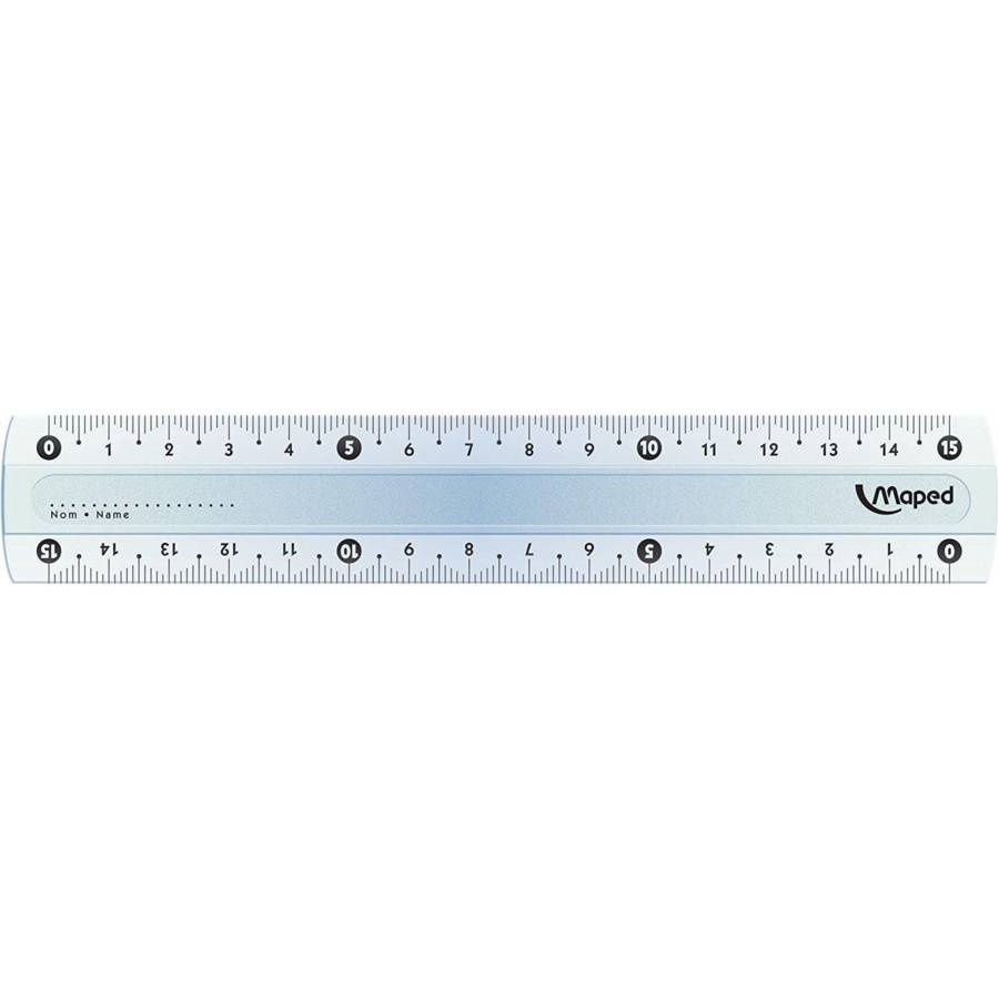 Maped Règle plate Start 146, 150 mm, en plastique graduation imprimée en une couleur résistante aux UV, graduation en mm, transparent, dans un étui de protection