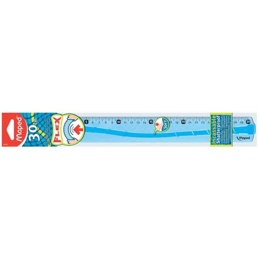 Maped règle plate Flex, 300 mm en plastique incassable Impression avec encre résistante aux UV Répère visible tous les 5 cm Dans 1 étui de protection Couleur aléatoire bleu transparent OU vert transparent (le choix d'une couleur spéciale n'est pas possible)