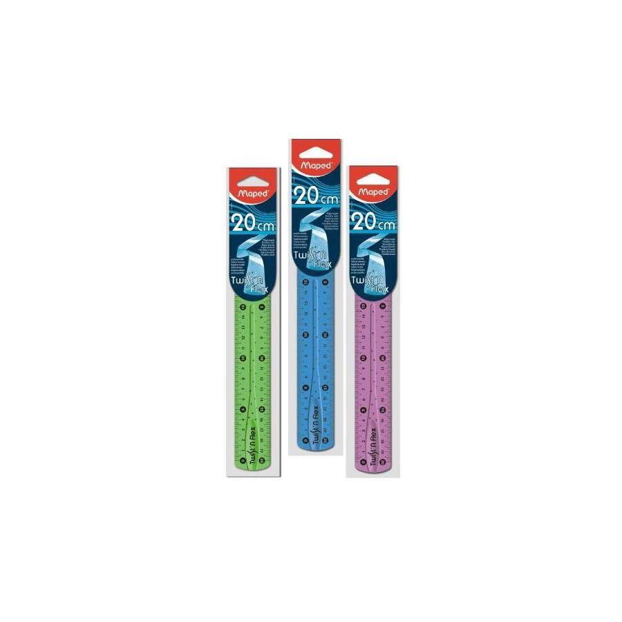 Maped Règle plate Twist'n Flex de 200 mm Incassable et flexible, elle peut être tordue sans limite Dans un étui de protection Couleur aléatoire : bleu, vert OU rose (choix spécial d'une couleur impossible)