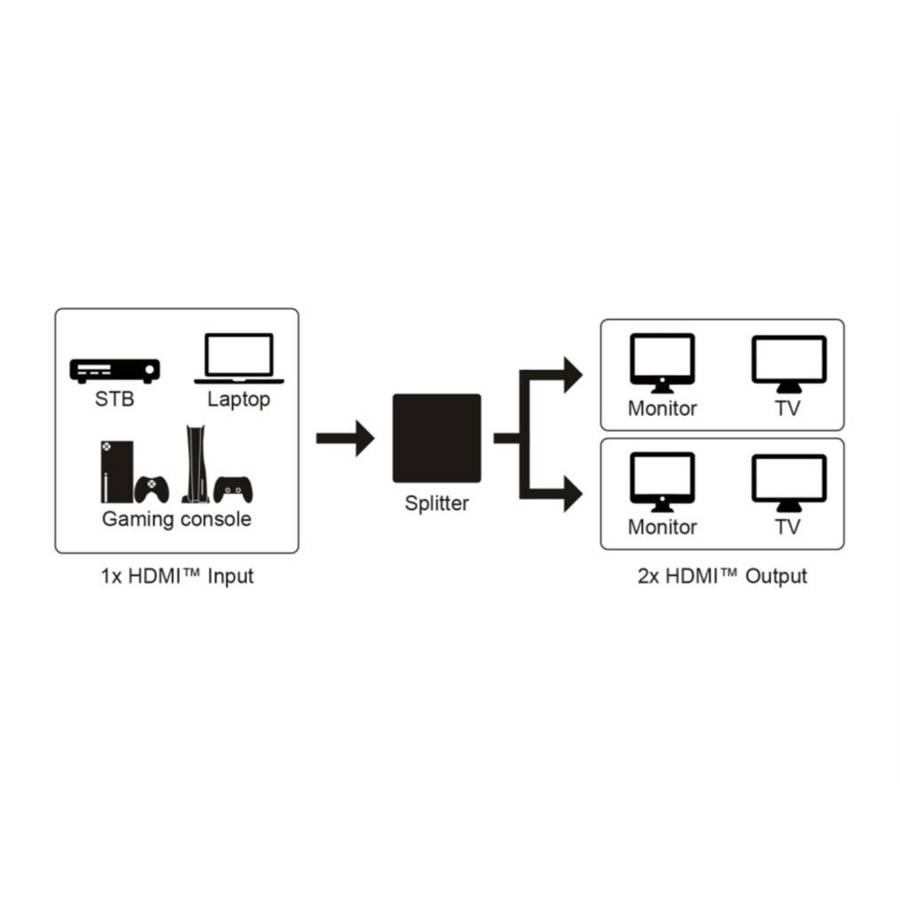 Splitter HDMI™ qui duplique 1x signal d'entrée HDMI™ vers jusqu'à 4x les sorties HDMI™ comme un téléviseur, un moniteur ou un vidéoprojecteur.