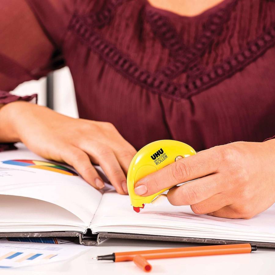 UHU DRY & CLEAN ROLLER jetable roller colle permanent 8.5 M x 6.5 mm Roller de colle ultra pratique, ne nécessite aucun séchage! Pour coller de façon permanente Rapide, propre, précis Colle instantanément - pas de temps de séchage Ne contient pas de solvant Dispositif de contrôle de la longueur de bande restante et vis d'ajustement de la bande Avec capuchon de protection intégré pour protéger la bande