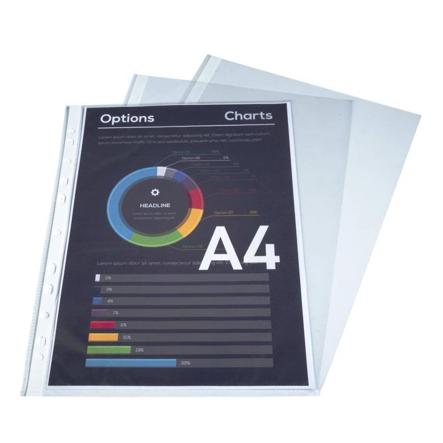 Sachet 100 pochettes perforées PP A4 grainé 5/100 Transparent