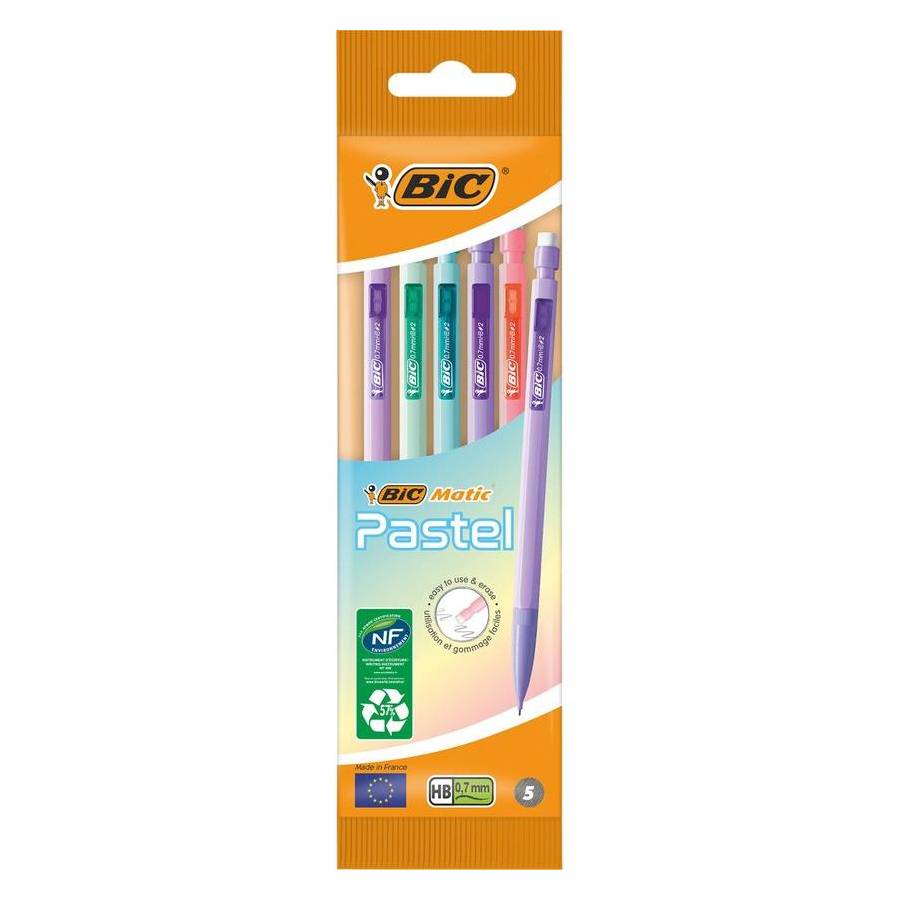 BIC MATIC® PASTEL 0,7 HB - 0,7 Porte-Mines 0,7mm Corps de couleurs pastel & agrafe translucide - 5